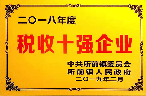 ▲喜獲所前鎮(zhèn)“稅收十強企業(yè)”